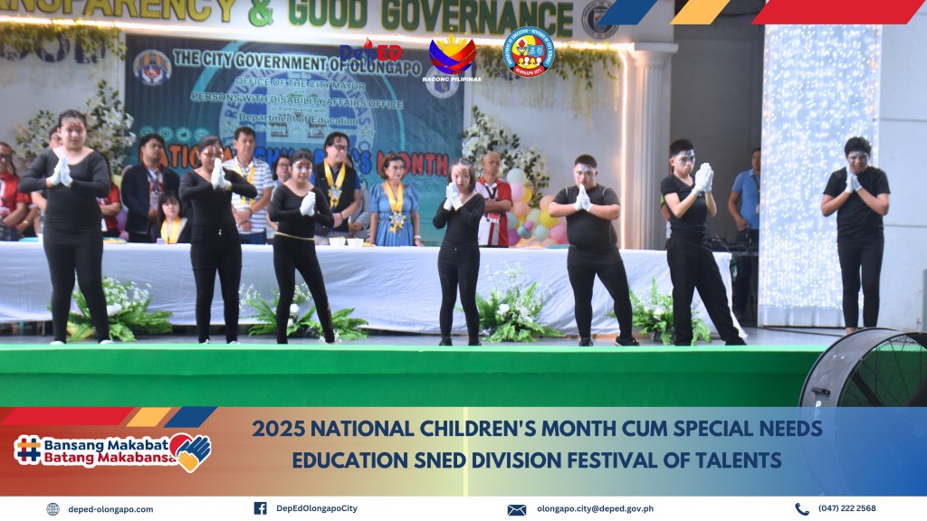In a vibrant celebration of talent, inclusivity, and child empowerment, SDO Olongapo City, led by Dr. Danilo Dela Rosa, Special Needs Education (SNED) Division Focal Person, and in collaboration with the City Government of Olongapo through the Persons with Disability Affairs Office (PDAO), spearheaded the 2025 National Children’s Month Celebration cum Division Festival of Talents on November 25, 2025 at the Rizal Triangle Multipurpose Center.